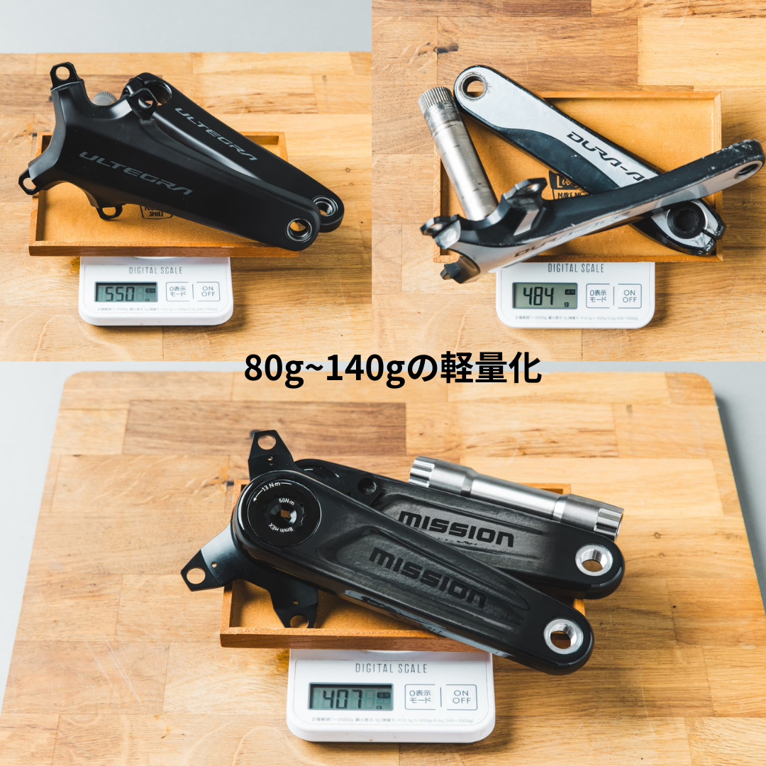 ホイールやフレームの軽量化に注目される中、「クランク」の軽量化はまだまだ未開拓な分野です。