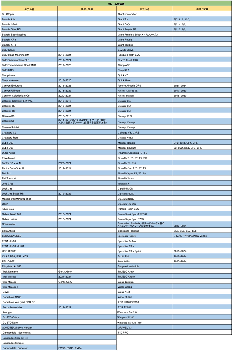 | 注意事項 | 必ずしも専用スペーサーが必要という訳ではございません。 また、年式によって必要とするスペーサーが異なる場合がございます。 |